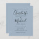 Con nombres de estilo característico, esta elegante invitación a una boda azul polvorienta con presupuesto puede ser personalizada con su información en letras de moda. Diseñado por Thisisnotme©