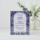 Diseño elegante con un ilustracion acuático damasco sobre un azul marino profundo. Sobre esto hay un diseño de arco en un blanco transparente, que forma el telón de fondo para los detalles de su boda. Haga clic en 'personalizar esta plantilla' para cambiar el texto.