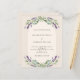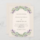 Un fondo beige decorado con flores de lavanda violeta, eucalipto y armazón de arco. Personalice y sus nombres y detalles. 1 hoja = 1 borde impreso de invitación al borde.
