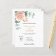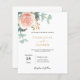Un fondo blanco moda. Decorada con rosa de oro y floral rosa, flor rosa y hojas de eucalipto de color verde acuático, brotes, vegetación y una falsa primavera dorada. Personalice y agregue sus nombres y detalles del boda. Letras de color negro y dorado. Atrás: agregue la URL de su sitio web boda al código QR para obtener más detalles y/o RSVP. 1 hoja = 1 borde impreso de invitación al borde.