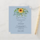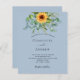 Un fondo azul polvoriento decorado con girasoles y vegetación eucaliptus. Personalice y agregue sus nombres y detalles del fiesta.