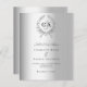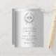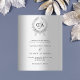 Un falso fondo plateado y una corona. Personalice y agregue sus iniciales, nombres y detalles del monograma. Texto negro. 1 hoja = 1 borde impreso de invitación al borde.