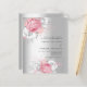 Un fondo falso plateado. Decorada con grandes rosas rosas rosas y blancas. Personalice y agregue sus nombres y detalles del boda. 1 hoja = 1 borde impreso de invitación al borde.