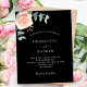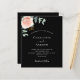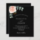 Fondo negro. Decorada con rosa de oro y floral rosa, flor rosa y hojas de eucalipto de color verde acuático, brotes, vegetación y brotes de oro falsos. Personalice y agregue sus nombres y detalles del boda. 1 hoja = 1 borde impreso de invitación al borde.