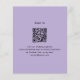 Un fondo blanco. Decorado con abejas y flores silvestres pintadas en violeta y rosa. Personalice y agregue sus nombres y los detalles. Atrás: color de fondo violento. Agregue la dirección URL de su sitio web boda al código QR para obtener más detalles y/o RSVP. 1 hoja = 1 borde impreso de invitación al borde.