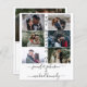 Este diseño de invitación a la boda tiene 6 collage de fotos, el boda de texto en el medio , un guión de caligrafía de texto elegante en el frente y tiene una foto, fecha y ubicación del boda y otros detalles en la parte posterior. Invitaciones a bodas de collage de fotos modernas.
