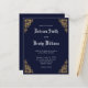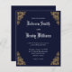 Obtén asequibilidad Y calidad con este diseño de invitación a la boda "Budget Navy Vintage Antique Lace". El diseño presenta un fondo azul marino con acentos de borde lacado dorado en cada esquina, emparejado con una bonita fuente caligráfica antigua para los nombres de Bride y Groom. *Para más personalizares, por favor, haga clic en el botón "Editar" para abrir la herramienta de diseño en el sitio. *Artículos coincidentes disponibles en nuestra colección de bodas "Vintage Gold Lace". Si desea que un elemento coincida con el que no tenemos actualmente, por favor contáctame a través del botón "mensaje" que aparece a continuación o en themintymaker@gmail.com