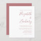 Esta sencilla y moderna invitación a la boda incluye un polvoriento texto rosa sobre un fondo blanco. Añada los nombres de la novia y del novio en una caligrafía elegante de escritura a mano y los detalles en letra sans serif. El reverso es un tono de rosa sólido y polvoriento. NOTA: Los sobres no se incluyen automáticamente con estas invitaciones presupuestarias, así que por favor recuerde elegir la opción "sobres blancos".