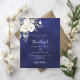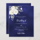 Para un boda elegante y romántico. Un fondo azul marino, de colores desiguales, decorado con flores blancas y rosas. Personalice y agregue sus nombres y detalles. 1 hoja = 1 borde impreso de invitación al borde.