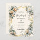 Un suave fondo beige y crema. Decorada con flores blancas y amarillas y una cinta dorada. Personalice y agregue sus nombres y detalles. 1 hoja = 1 borde impreso de invitación al borde.