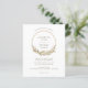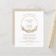 El diseño de este boho boda muestra los nombres de la novia y del novio enmarcados por un aro dorado decorado con hierba de pampas color agua. Personalice el texto marrón claro con los nombres de la pareja y los detalles del boda. El reverso es una sólida sombra de beige.