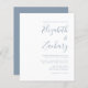 Esta sencilla y moderna invitación a la boda incluye un polvoriento texto azul sobre un fondo blanco. Añada los nombres de la novia y del novio en una caligrafía elegante de escritura a mano y los detalles en letra sans serif. El reverso es un tono de azul sólido y polvoriento. NOTA: Los sobres no se incluyen automáticamente con estas invitaciones presupuestarias, así que por favor recuerde elegir la opción "sobres blancos".