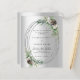 Para una boda de invierno. Un fondo de imitación plateada decorado con conos, bayas blancas y verdor. Un marco falso plateado. Personalice y agregue sus nombres y detalles. 1 hoja = 1 borde impreso de invitación al borde.