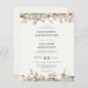 Esta rústica invitación a la boda se caracteriza por las acuarelas que bordean el fondo y la parte superior de la delicada vegetación. Personalízalo con los nombres de la novia y el novio en una vintage tipografía de carbón gris sobre un fondo blanco roto. Añada la parte inicial de la pareja en la parte posterior, rodeada por una pequeña corona acuática a juego.