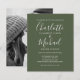 Con sus fotos, nombres de estilo característico, esta elegante invitación a bodas verde oliva puede ser personalizada con sus detalles en elegantes letras modernas. Diseñado por Thisisnotme©