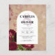 En esta antigua invitación a bodas botánicas con temática arquitectónica destacan rosas rojas profundas de bonito.Hay una variedad de tipos de tarjetas y papel para todos los presupuestos, incluyendo el tradicional papel de cartón 5x7 y papel de volante (precio más bajo). Para verlas todas, vea ' disponible en - todos los productos' en la base de la sección "Acerca de este diseño".