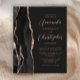 El borde izquierdo de esta elegante y moderna invitación a la boda incluye un borde de ágata color de agua negro recortado con falso rosa purpurina de oro. El texto de personalizable combina secuencias de comandos rosa rosa y sans serif en un fondo negro de pizarra. El reverso presenta un diseño de agate de oro negro y rosa a juego.