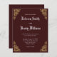 Obtén asequibilidad Y calidad con este diseño de la invitación a la boda "Burgundy Vintage Antique Lace". El diseño presenta un fondo burdeos morboso profundo con acentos dorados de borde lacado en cada esquina, emparejado con una bonita fuente caligráfica antigua para los nombres de Bride y Groom. *Para más personalizares, por favor, haga clic en el botón "Editar" para abrir la herramienta de diseño en el sitio. *Artículos coincidentes disponibles en nuestra colección de bodas "Vintage Gold Lace". Si desea que un elemento coincida con el que no tenemos actualmente, por favor contáctame a través del botón "mensaje" que aparece a continuación o en themintymaker@gmail.com