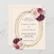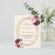 Para un boda elegante y romántico. Un fondo beige suave, de color crema, adornado con flores beige y borgoña mullidas, flores. Un falso marco oval de oro. Personalice y agregue sus nombres y detalles. De vuelta: color beige. 1 hoja = 1 borde impreso de invitación al borde.