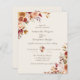Los colores presupuestales del otoño caen en invitaciones de boda florales de marfil. nombres, fechas e información de personalizares.