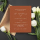 Naranja a la moda quemada, fondo de color terracota. Personalice y agregue sus nombres y detalles. 1 hoja = 1 borde impreso de invitación al borde.