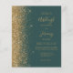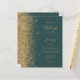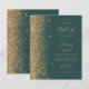 El borde izquierdo de esta elegante y moderna invitación a la boda incluye un purpurina de imitación dorada. El texto del personalizable combina la escritura a mano de color dorado, las fuentes de copperplate y cursiva sobre un fondo verde oscuro. El reverso presenta un diseño a juego con el verde oscuro y el purpurina dorado.