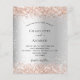 Un falso fondo metálico plateado. Decorada con un purpurina falso de oro rosa. Personalice y agregue sus nombres y detalles del fiesta. Atrás: agregue su enlace/URL a su sitio web boda para obtener más detalles y/o RSVP. 1 hoja = 1 borde impreso de invitación al borde.