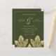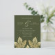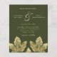 Consiga elegancia rústica con un presupuesto económico con esta invitación a la boda de las hojas rusticas verdes y doradas.