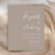 Esta sencilla y moderna invitación a la boda incluye texto blanco sobre un fondo neutro. Añada los nombres de la novia y del novio en una caligrafía elegante de escritura a mano y los detalles en letra sans serif. El lado inverso es un taupe sólido.