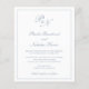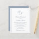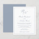 Invitación a bodas de estilo tradicional con un diseño sencillo y clásico, con su monograma inicial y sus nombres en una caligrafía elegante dentro de un borde delgado. Todos los elementos de diseño están en azul polvoriento sobre un fondo blanco y pueden cambiarse en la herramienta de edición de diseño. Este elegante diseño es perfecto para un boda formal.