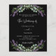 Un fondo negro decorado con flores de lavanda y vegetación eucaliptica. Personalice y sus nombres y detalles. 1 hoja = 1 borde impreso de invitación al borde.