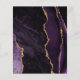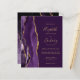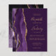El borde izquierdo de esta elegante y moderna invitación a la boda incluye un borde de ágata color morado adornado con un falso purpurina de oro. El texto del personalizable combina la escritura a mano de color dorado, las fuentes de copperplate y cursiva sobre un fondo violeta profundo. El reverso presenta un diseño de agate morado y dorado a juego.