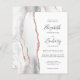 El borde izquierdo de esta elegante y moderna invitación a la boda se caracteriza por una pasarela de acuarela gris y blanca recortada con un falso purpurina de oro rosa. El texto del personalizable combina escritura a mano, copperplate y cursiva en gris carbón sobre fondo blanco. El reverso presenta un diseño de agate dorado a juego, gris, blanco y rosa.