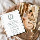 Presente a su boda con una impresionante invitación verde sabio con un elegante monograma de escudo floral. El suave tono verde sabio desprende una belleza natural y serenidad, mientras que el escudo floral aporta un toque atemporal y sofisticado. Perfecto para parejas que buscan un diseño refinado y elegante, esta invitación combina el encanto clásico con la elegancia moderna. El monograma personalizado lo hace único suyo, marcando el tono para una celebración inolvidable. Ideal para bodas de jardín o formales, esta invitación refleja perfectamente su día especial.