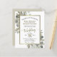 Estas invitaciones a bodas asequibles y económicas son la elección perfecta para clase, estilo y belleza a un precio reducido. El diseño es elegante, con hojas de eucaliptos pintadas a mano y ramas de pino en tonos oscuros de sabio y oro. La tipografía presenta caligrafía de escritura sofisticada, y hay un hermoso Relieve metalizado de imitación dorado. Una forma maravillosa de invitar a tus amigos y familiares a compartir tu alegría en tu día especial sin romper el banco.