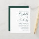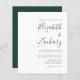 Esta sencilla y moderna invitación a la boda incluye un texto verde esmeralda sobre un fondo blanco. Añada los nombres de la novia y del novio en una caligrafía elegante de escritura a mano y los detalles en letra sans serif. El reverso es un tono de verde esmeralda sólido.