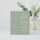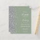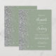 El borde izquierdo de esta elegante y moderna invitación a la boda incluye un falso borde purpurina plateado. El texto del personalizable combina la escritura a mano en blanco, la copperplate y las letras cursivas en un fondo verde sabio. El reverso presenta un diseño de color verde sabio y plata a juego.