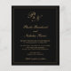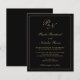 Invitación a bodas de estilo tradicional con un diseño sencillo y clásico, con su monograma inicial y sus nombres en una caligrafía elegante dentro de un borde delgado. Todos los elementos de diseño están en oro falso sobre un fondo negro y pueden cambiarse en la herramienta de edición de diseño. Este elegante diseño es perfecto para un boda formal.