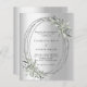 Un fondo falso plateado decorado con un verde salado. Un marco falso plateado. Personalice y agregue sus nombres y detalles. 1 hoja = 1 borde impreso de invitación al borde.