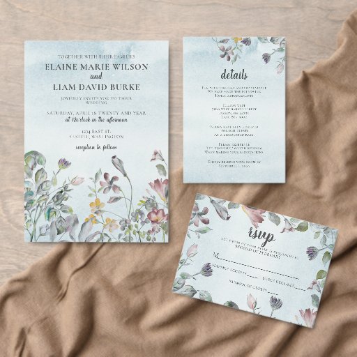 Dusty Blue Floral Spring Wedding Invitations SetDiseñado por Maria G