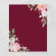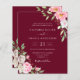 Una elegante invitación floral a una boda con flores color de agua rosa y rosa con caligrafía escrita a mano en un fondo rojo burdeos.