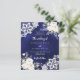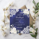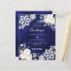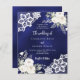 Para un boda elegante y romántico. Un fondo azul marino, de colores desiguales, decorado con flores blancas, rosas y encaje blanco. Personalice y agregue sus nombres y detalles. 1 hoja = 1 borde impreso de invitación al borde.