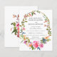 Una moderna corona floral rosa tiene un ambiente característico del Boho. También hay un ramo rosa detrás de esta invitación a la boda. Esta invitación a la boda de Boho es parte de la colección de flores silvestres rosadas de la Moda. Dispone de los elementos necesarios para crear un bonito y un exclusivo paquete de invitación a la boda.