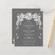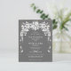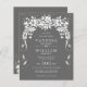 PRESUPUESTO White floral en cascada garland gris y blanca Invitación a la boda. Una bella guirnalda blanca en cascada adorna esta invitación a la boda con confeti dorado.