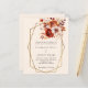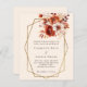 Para un boda elegante y romántico. Un fondo beige suave, de color crema, decorado en beige y con flores de color naranja quemadas. Un marco geométrico de oro falso. Personalice y agregue sus nombres y detalles. De vuelta: color beige. 1 hoja = 1 borde impreso de invitación al borde.
