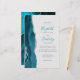 El borde izquierdo de esta elegante y moderna invitación a la boda incluye un verde azulado borde de ágata color azul azul adornado con un falso purpurina de plata. El texto del personalizable combina la escritura a mano verde azulada con el copperplate gris de carbón vegetal y las fuentes cursivas sobre un fondo gris pálido. El diseño verde azulado y plateado se repite en la parte posterior de la tarjeta.