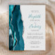 El borde izquierdo de esta elegante y moderna invitación a la boda incluye un verde azulado borde de ágata color azul azul adornado con un falso purpurina de plata. El texto del personalizable combina la escritura a mano verde azulada con el copperplate gris de carbón vegetal y el cursiva ión un fondo gris pálido. El reverso presenta un diseño de ágata verde azulado y plateado a juego.