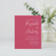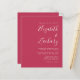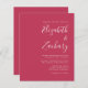 Esta sencilla y moderna invitación a la boda incluye texto blanco sobre un fondo rosa magenta. Añada los nombres de la novia y del novio en una caligrafía elegante de escritura a mano y los detalles en letra sans serif. El reverso es un tono de magenta sólido. NOTA: Los sobres no se incluyen automáticamente con estas invitaciones presupuestarias, así que por favor recuerde elegir la opción "sobres blancos".