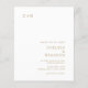 Invitación a la boda económica moderna con un diseño sencillo y minimalista con tu monograma en la esquina superior izquierda y los detalles de tu boda en la esquina inferior derecha. Todos los elementos de diseño están en oro falso sobre un fondo blanco y pueden cambiarse en la herramienta de edición de diseño. Esta invitación a la boda de moda con un diseño minimalista y elegante va bien con cualquier estilo de boda contemporáneo.
