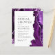 El borde derecho de esta elegante y moderna ducha de novia cuenta con un borde de batido color morado con un falso purpurina plateado. El texto del personalizable combina suero gris carbón, copperplate y tipografías cursivas en un fondo blanco. El reverso presenta un diseño de agate morado y plateado a juego.